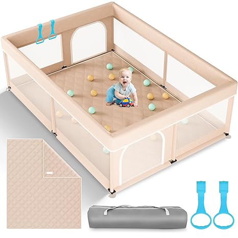 babyeap Baby Playpen with Mat,50" x 71",Deep Gray