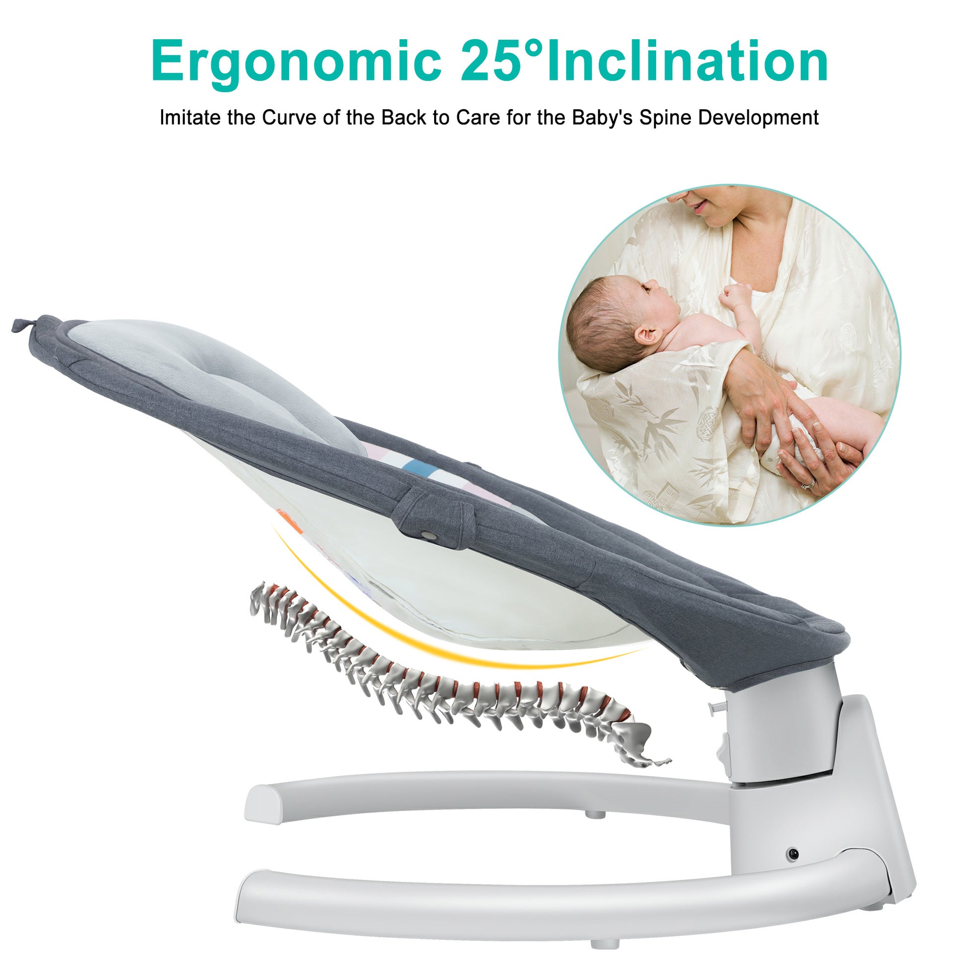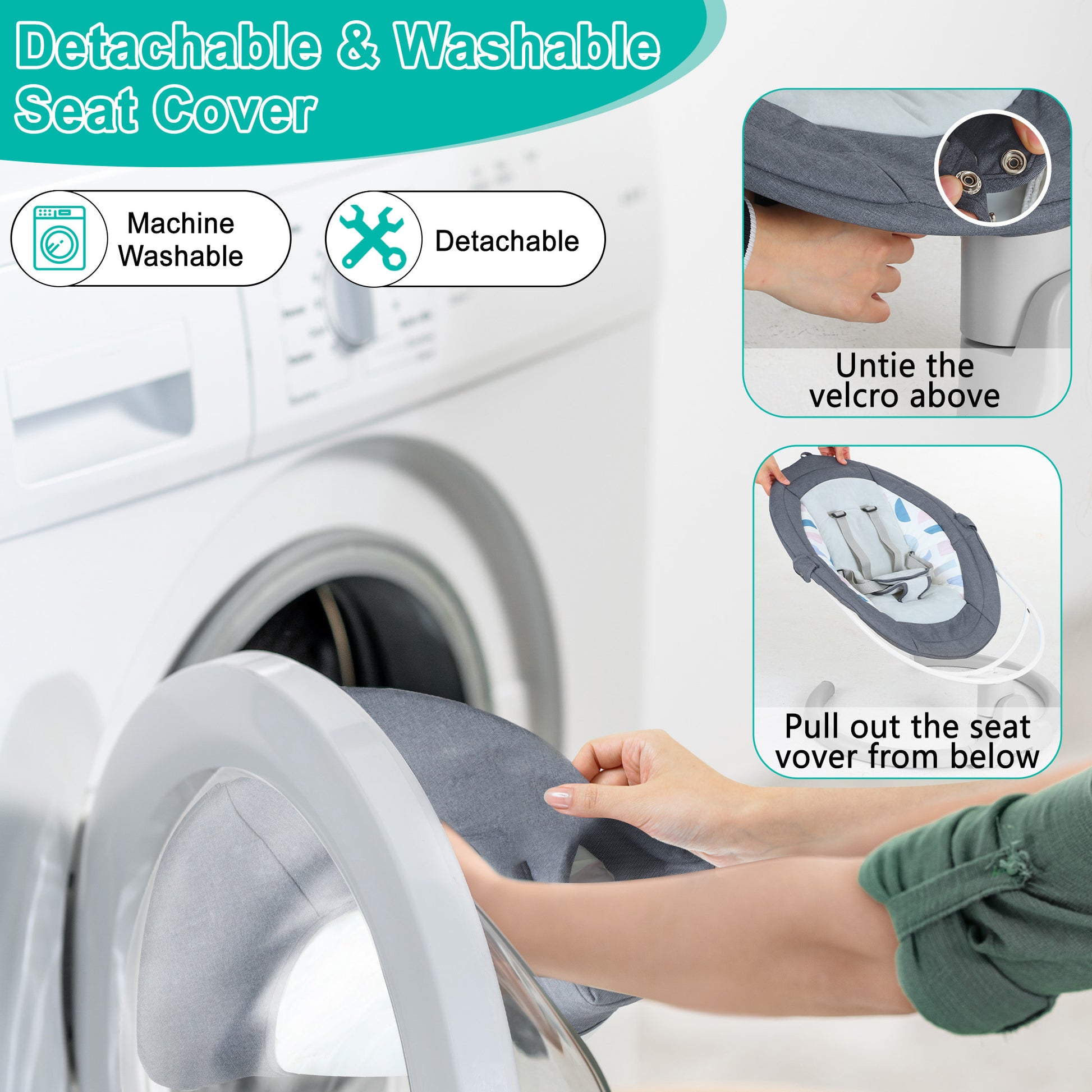 - The cationic fabric outer ring and crystal velvet cushions of our baby swings provide a breathable and comfortable seat for your little one. The durable aluminum base with anti-skid grips ensures stability and safety.