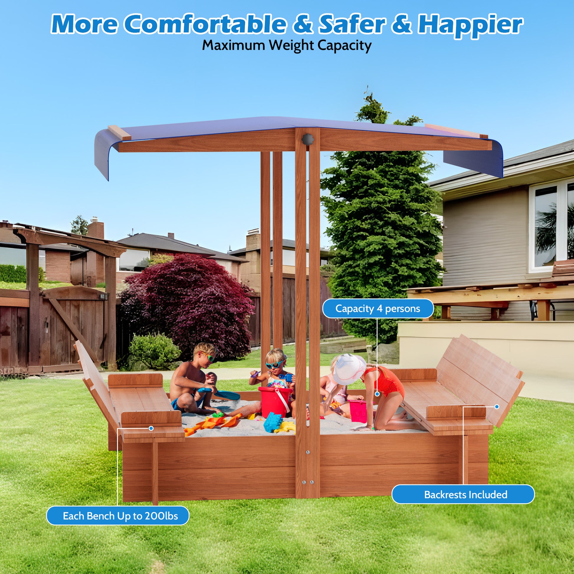 COCODRAGON is committed to providing kids with quality wooden sandboxes that inspire their imagination and desire to explore. We believe that a quality sandbox with lid should not only be fun, but should also be a family bond, this is a great sand box for kids ages 4-8. Our kids sand box is made of sturdy, high quality wood, which has been carefully sanded to ensure smoothness and no barbs for long term outdoor use. The adjustable swivel awning provides all-weather protection from the sun and showers.The sandbox cover also converts into a comfortable seat and backrest, giving kids a safe place to rest after a fun-filled day. Own this sandbox large and let it be your child's faithful companion on their journey to grow and protect them on every adventure.
