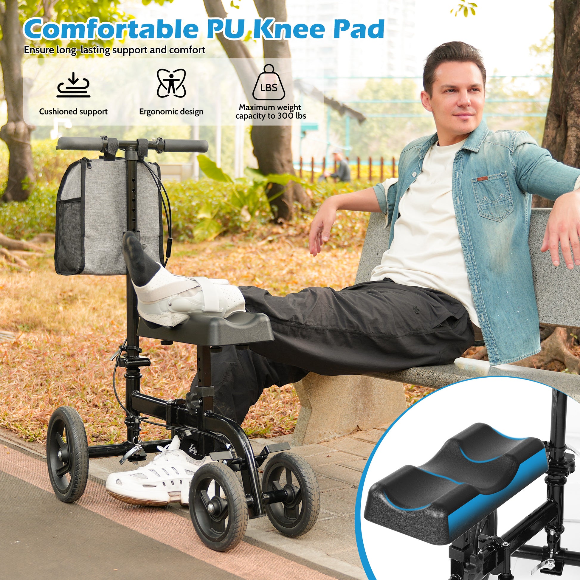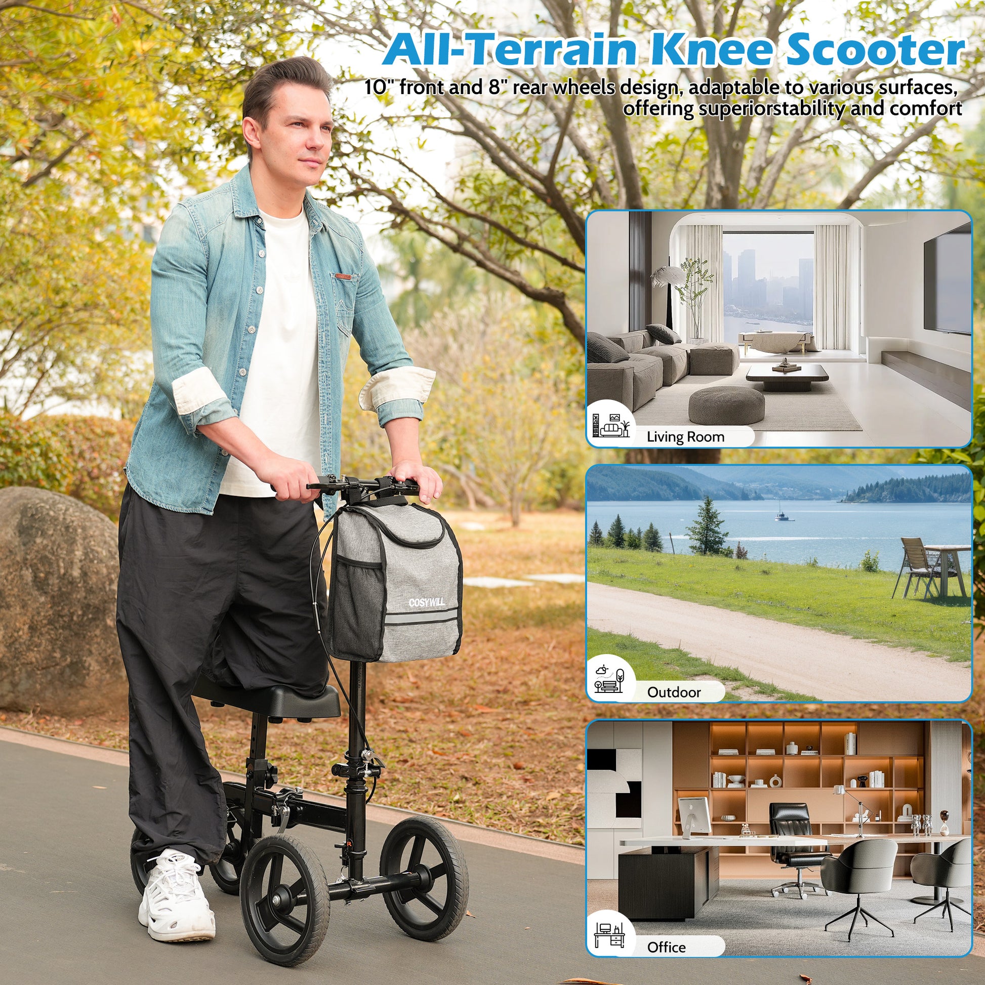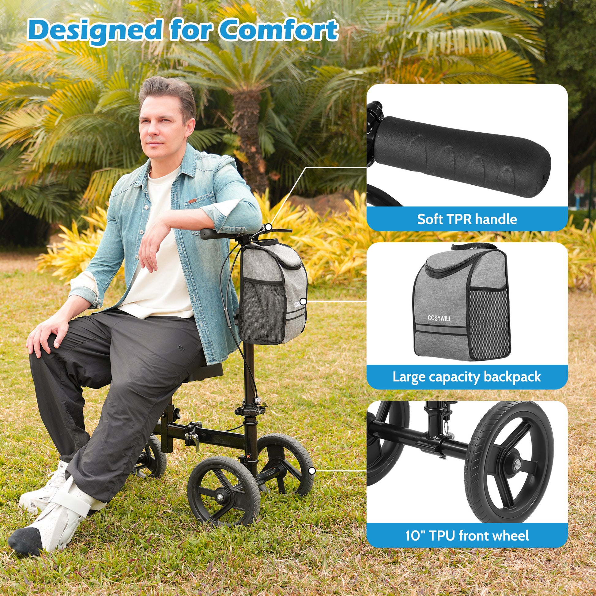 COSYWILL Steerable Knee Scooter,Knee Walker Scooter for Adults with 10" Front Wheels,Foldable Knee Scooter for Foot Surgery Crutches Alternative,Black
