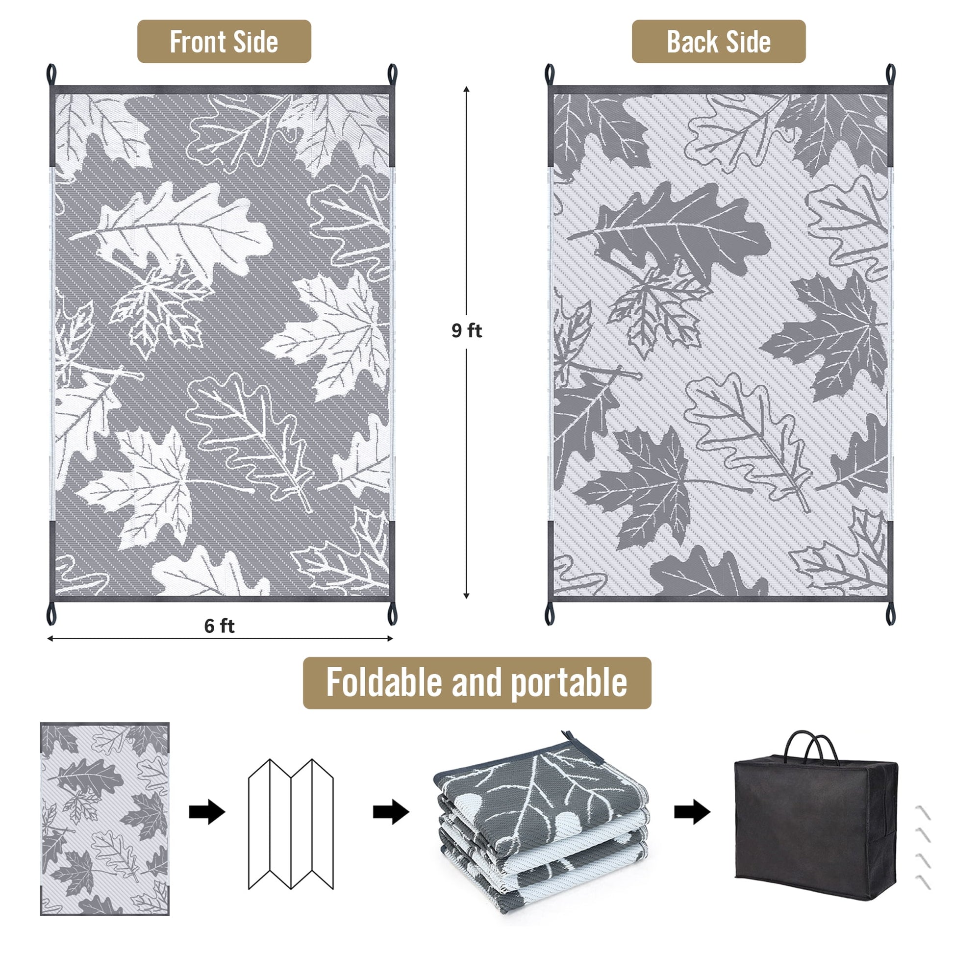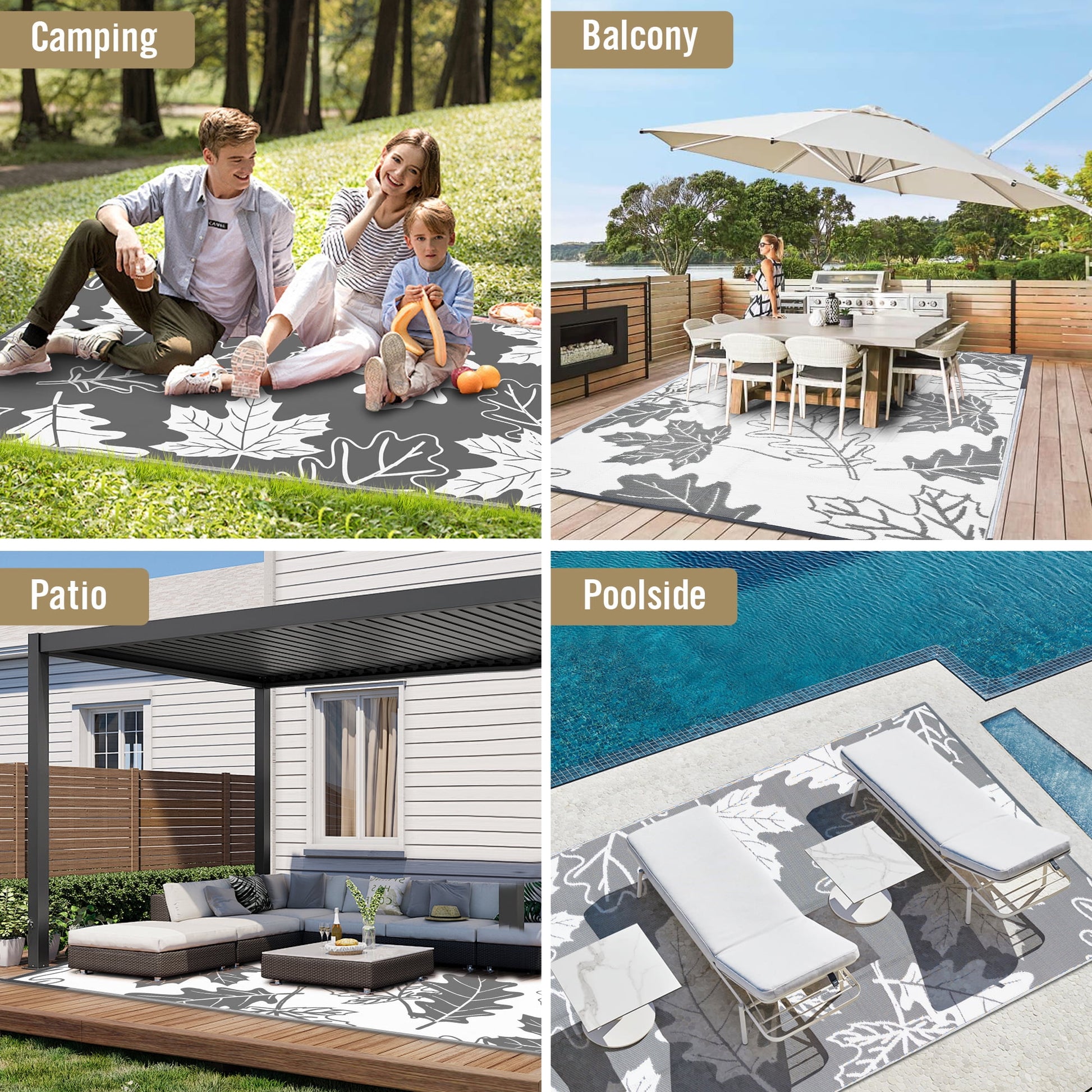 - 【Reversible Mats】 Our 6' x 9' outdoor rug in White & Grey is designed to be reversible, completing the unique layout of multiple palm leaves, offering two different looks with a quick flip.