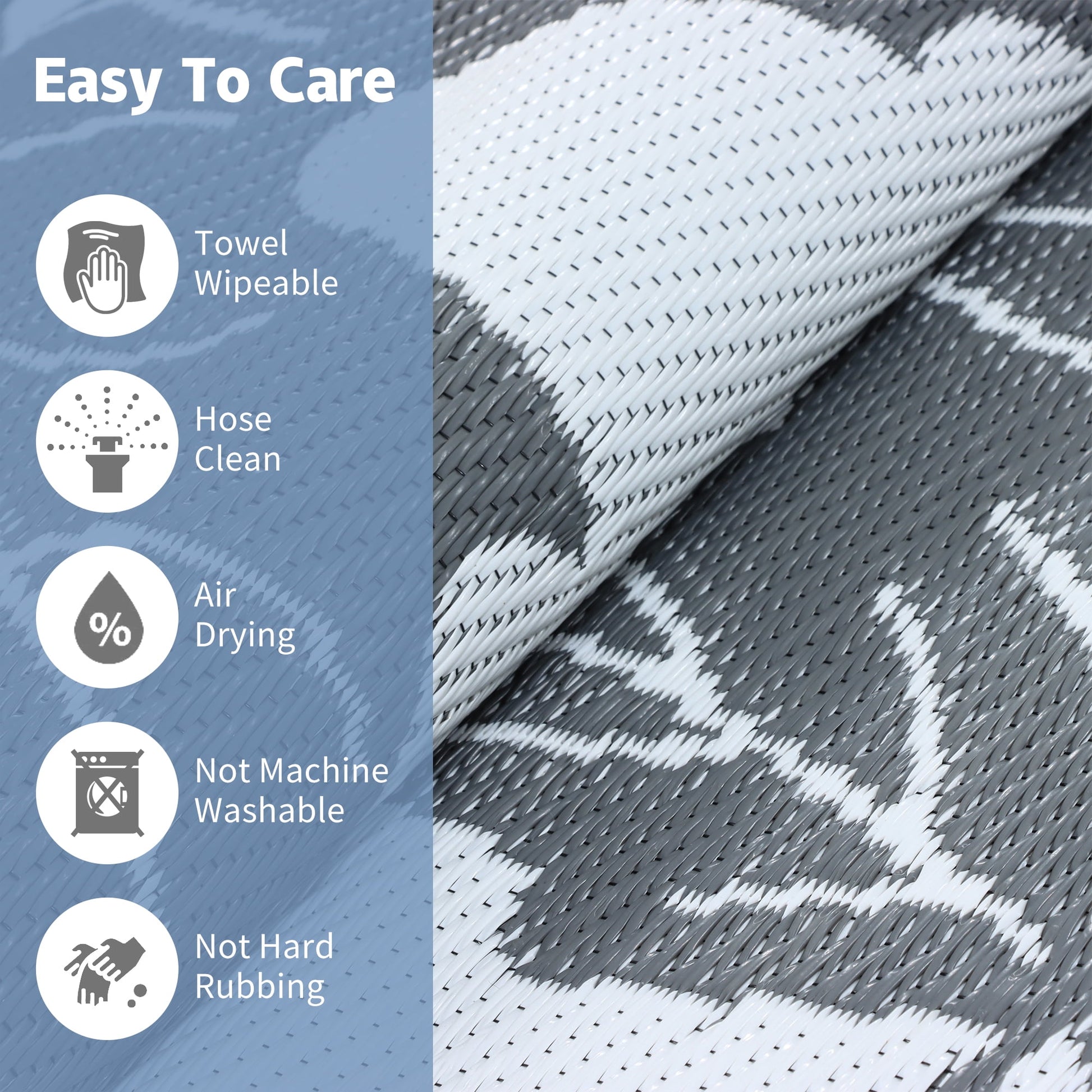 - 【Low Maintenance Patio Mat】 Our indoor and outdoor rugs are waterproof, stain resistant, non-slip, easy to clean and well-breathable. As an outdoor patio rug or picnic mat, you don't have to worry about drink spills, food stains, sand or dirt, just rinse with water or wipe with a damp cloth. Breathable material allows it to air dry in minutes.