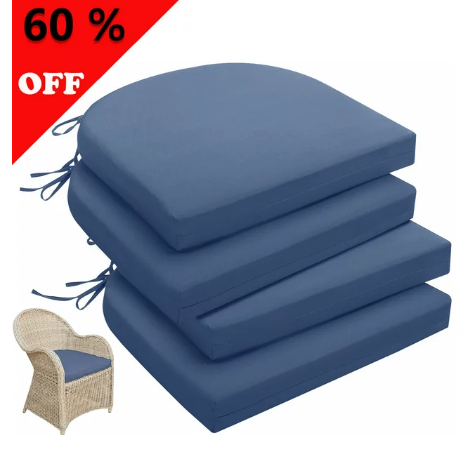 CozyDesg Outdoor Chair Cushions Set of 4, 17"x16"x2" Waterproof Patio Chair Cushions for Outdoor Furniture-Blue