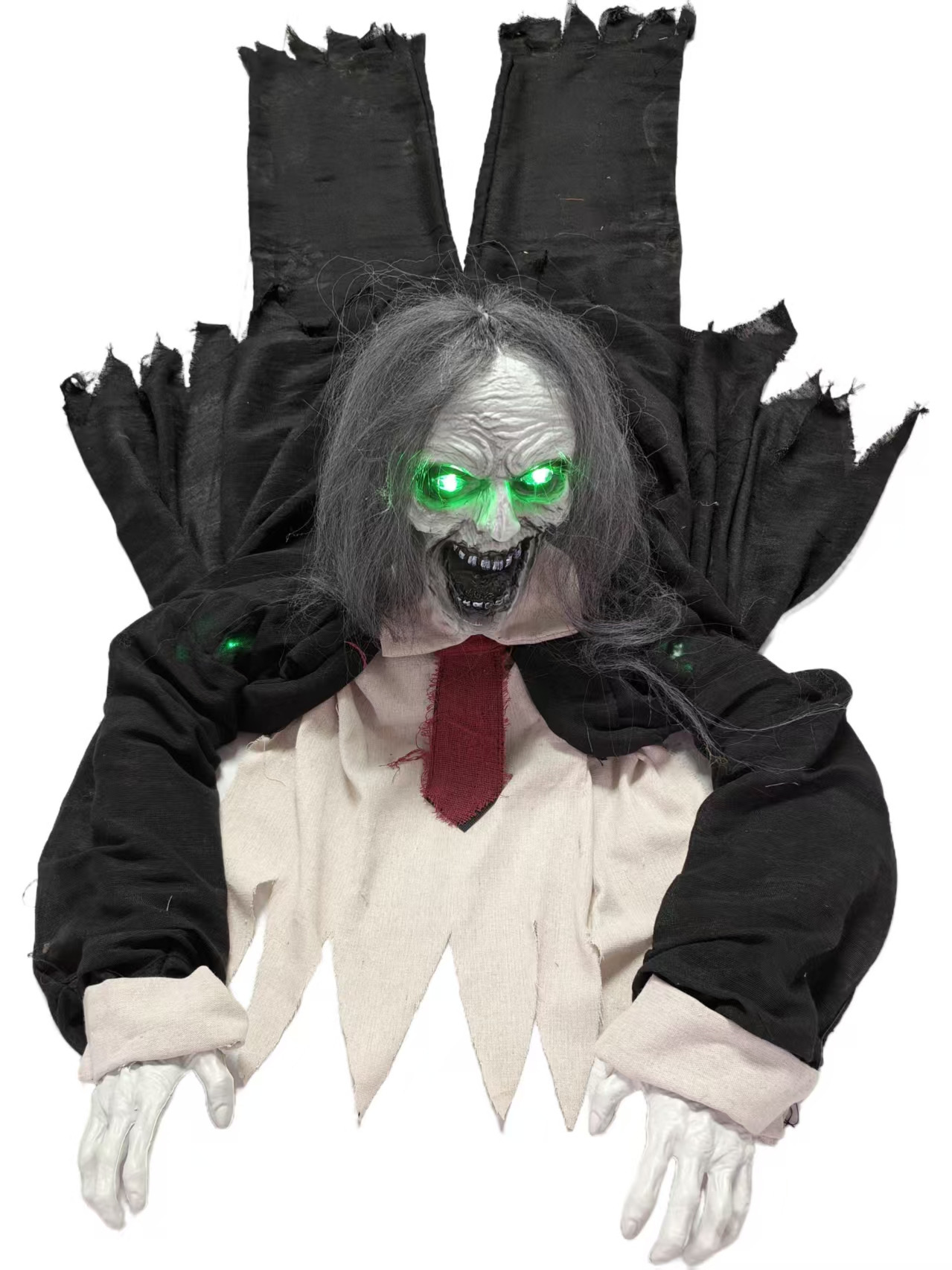 - This ghostly groundbreaker combines a skeleton frame with flowing white gauze, blending creepy skeletal terror with eerie ghost aesthetics. Its half-buried pose gives the illusion of a spirit rising from the grave. Lightweight and easy to set up or store, it’s a perfect fit for porches, lawns, or window displays.