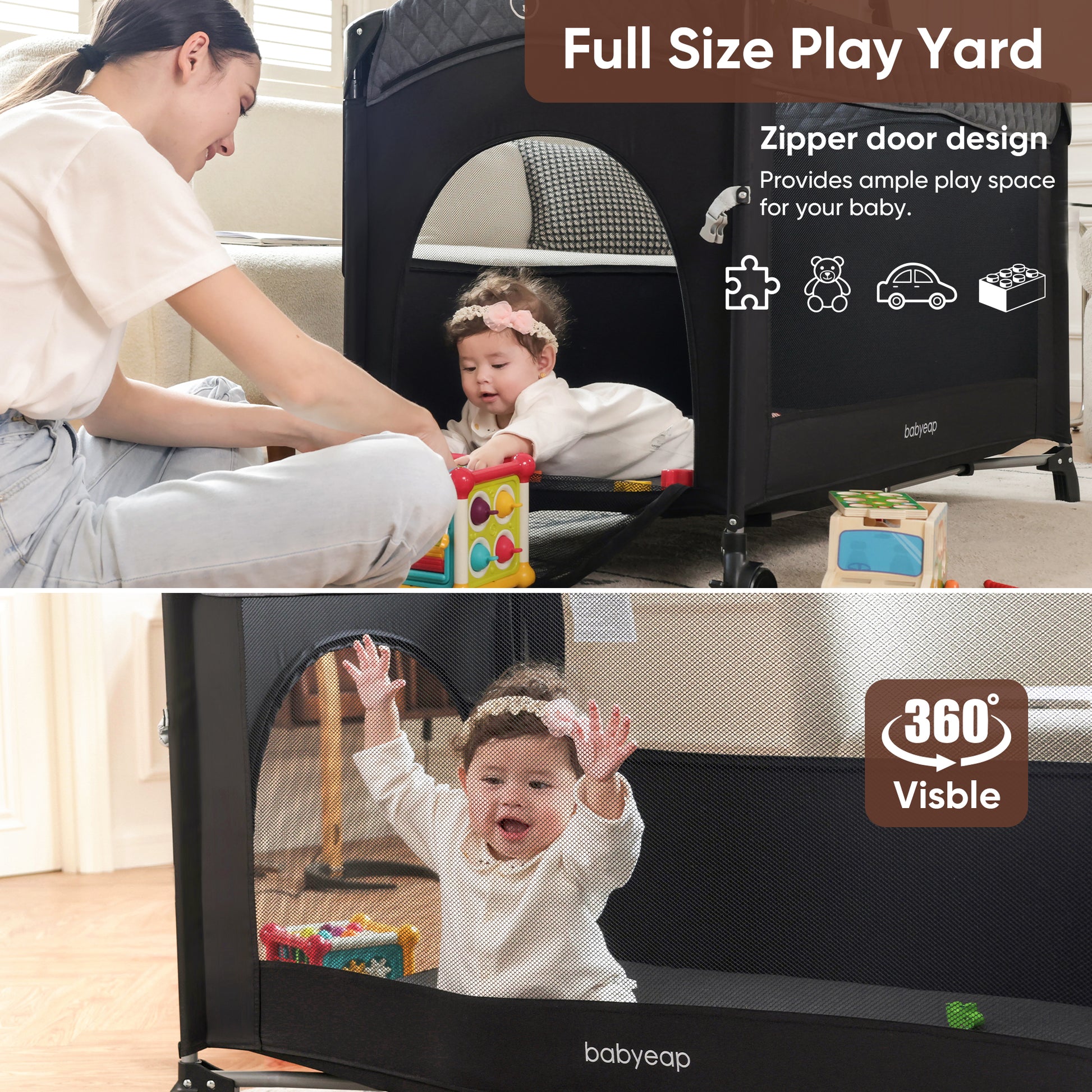 TEAYINGDE 5 in 1 Baby Playard with Bassinet, Nursery Center Playard, Gray