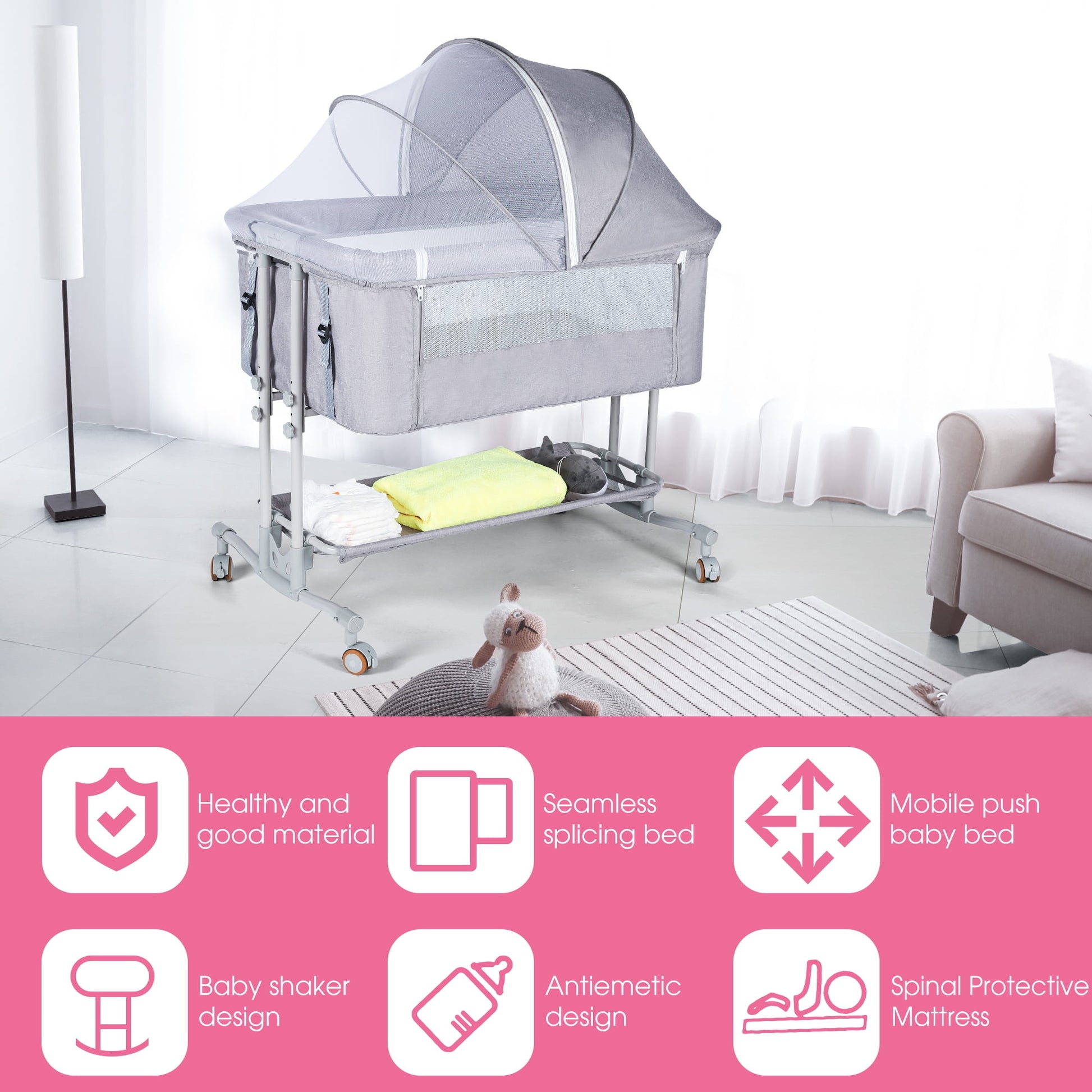 TEAYINGDE Baby Bassinets Bedside Sleeper with Wheels, Newborn Baby Cribs w/Storage Basket,Light Grey