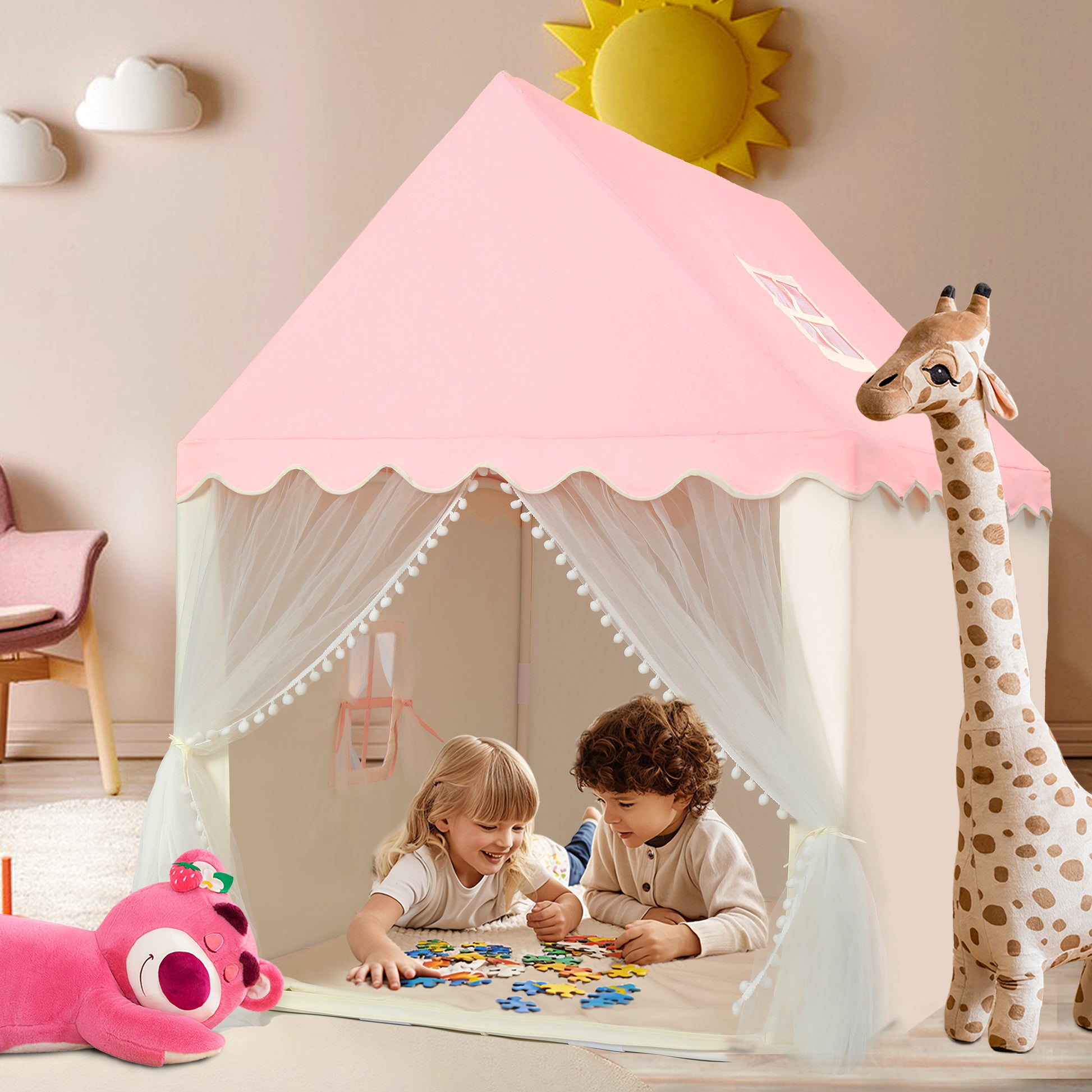 Wisairt Kids Tent, Play Tent Large Playhouse Indoor with Mat Waterproof for Boy Girl Birthday Gift for Kids, Pink