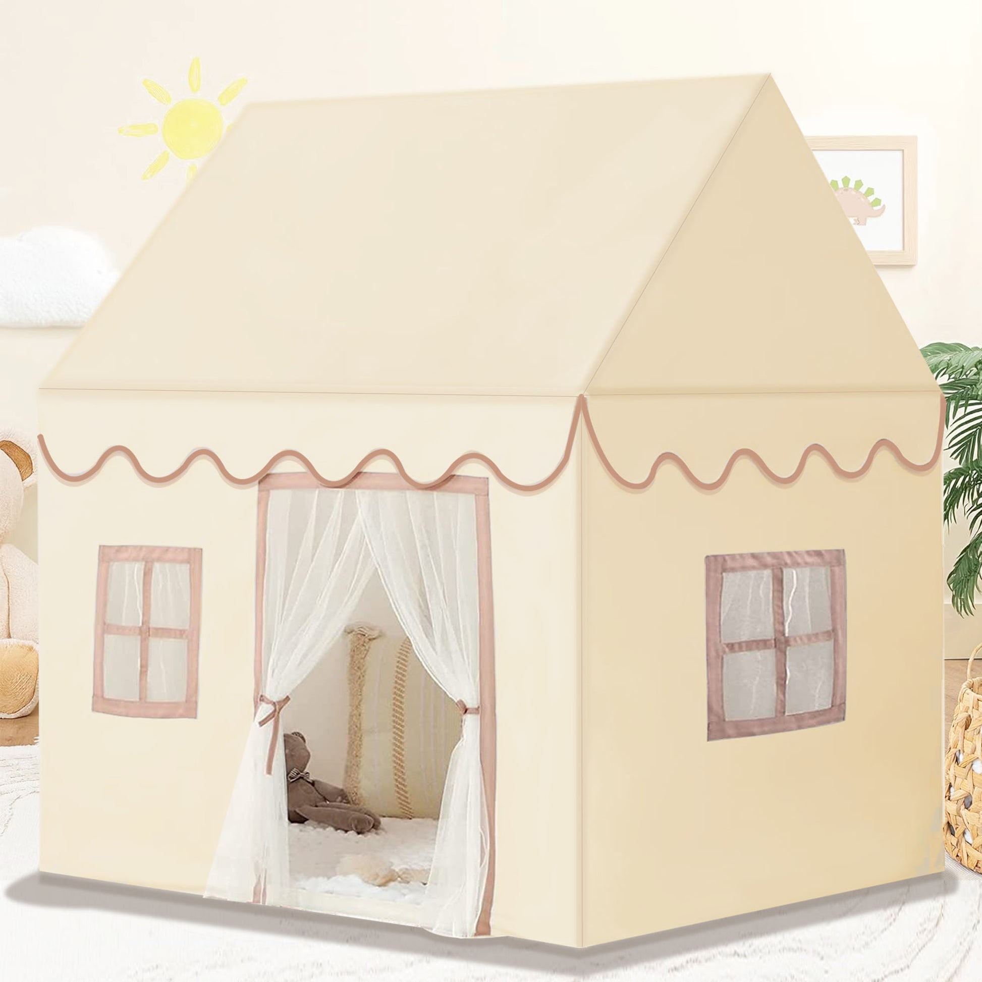 Wisairt kids tent is a play tent designed for children. It comes with a soft and fluffy mat with a waterproof bottom design. The high-quality material is durable and provides a safe play space for children. The 47x39x50 in kids play tent is designed with 2 windows and a spacious space that can accommodate multiple friends to play together, adding unlimited joy. It is easy to set up and store, and the tent can be washed and maintained easily.