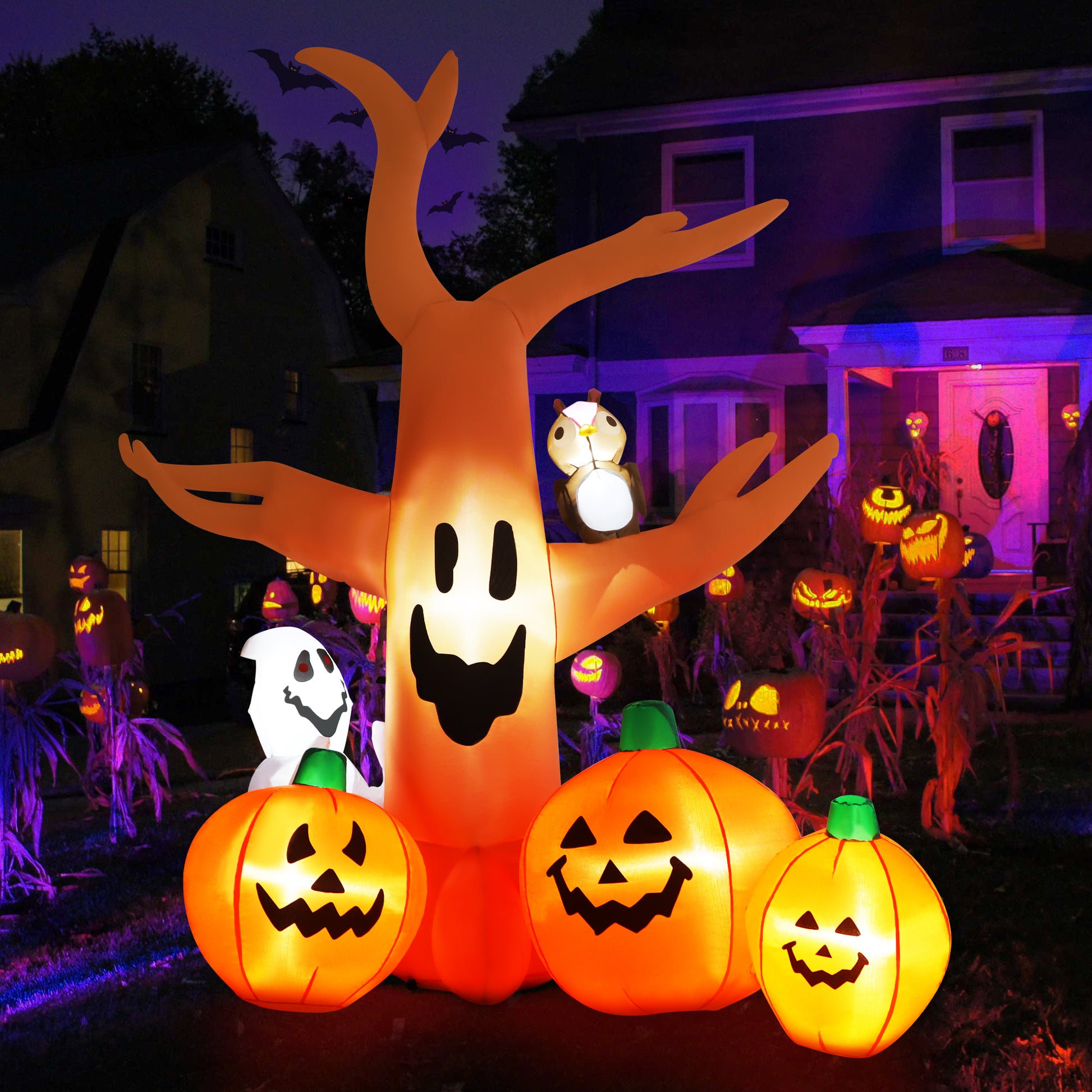 Yexmas 8FT Halloween Inflatables Dead Tree,Outdoor Halloween Decorations with Built-in LED Lights ,Halloween Blow Up Yard Decorations with Pumpkin,Ghost,and Owl