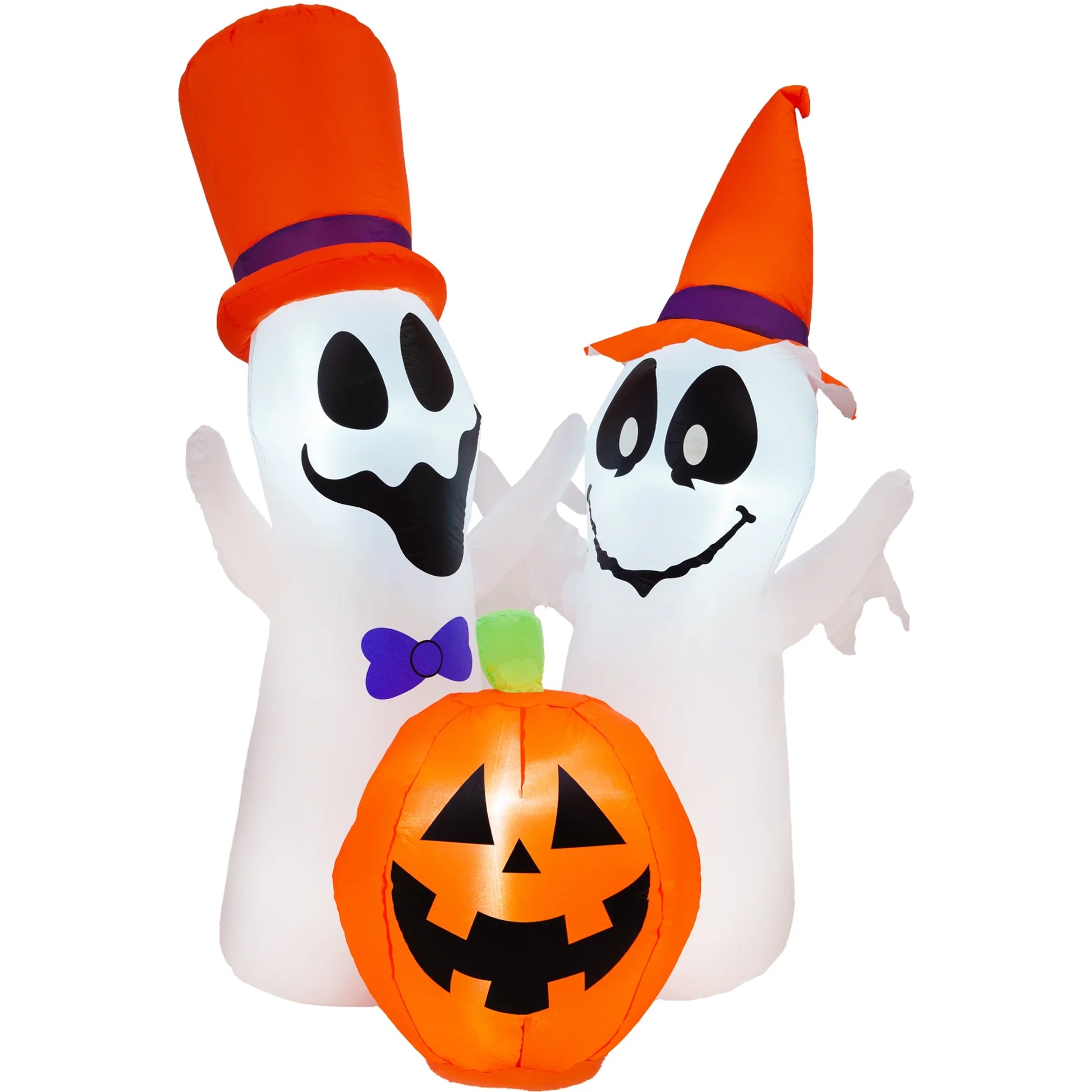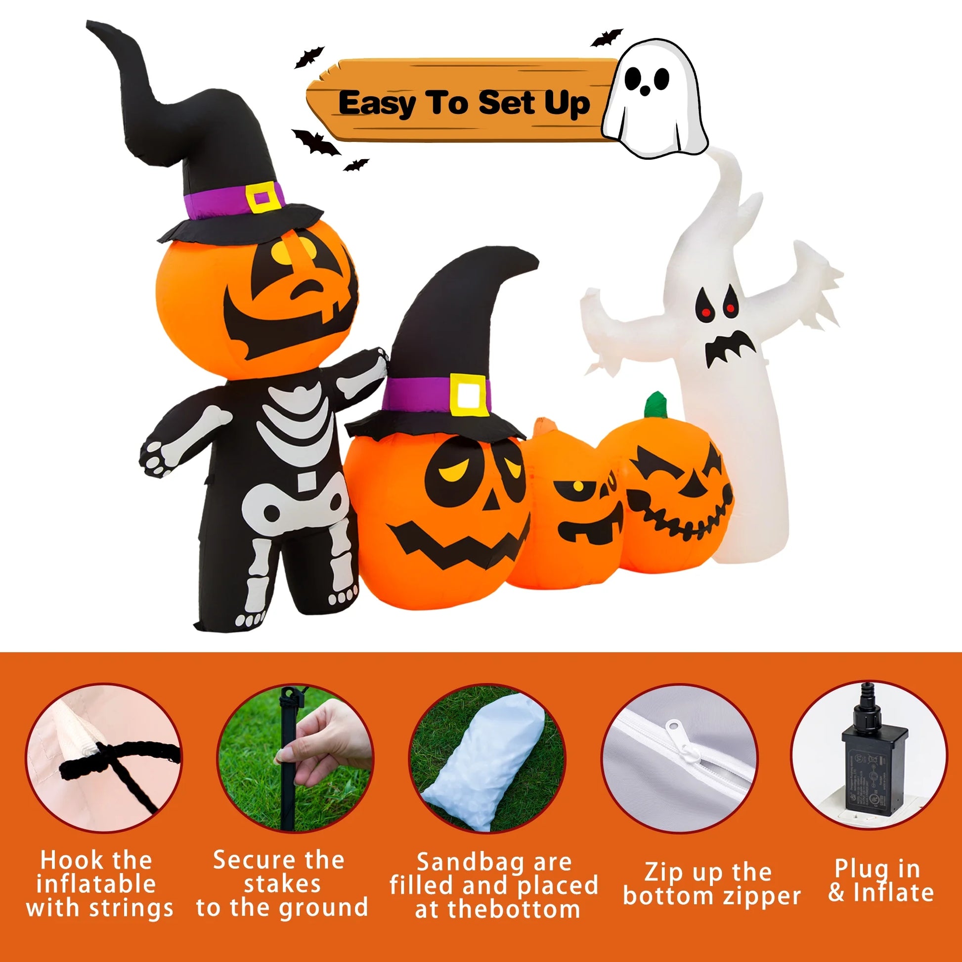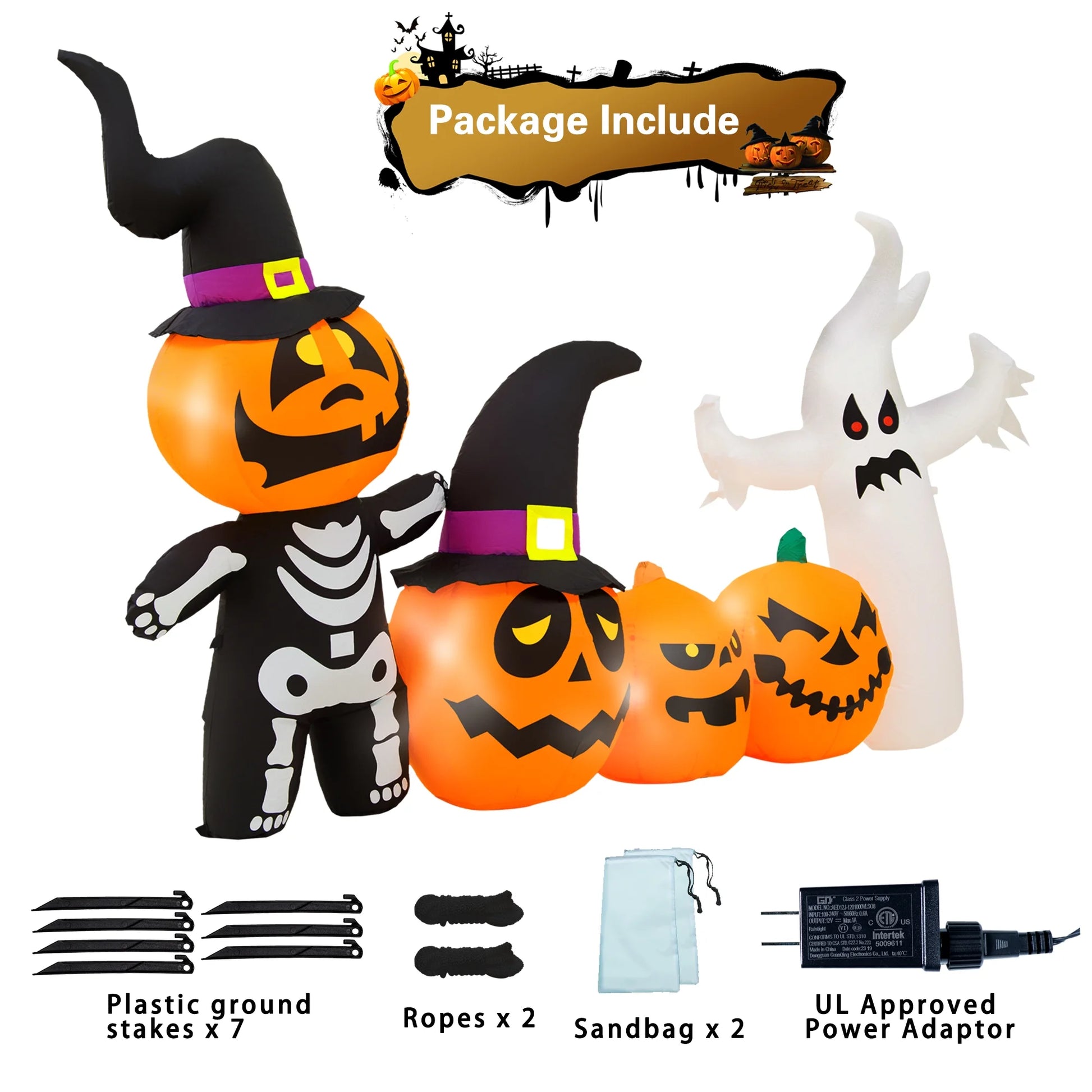 Yexmas Halloween Inflatables, 9 FT Long 4 Pumpkins with Cute White Ghost Outdoor Decorations, Built-in LEDs, Blow Up Party, Waterproof Yard, Garden, Lawn Decor.