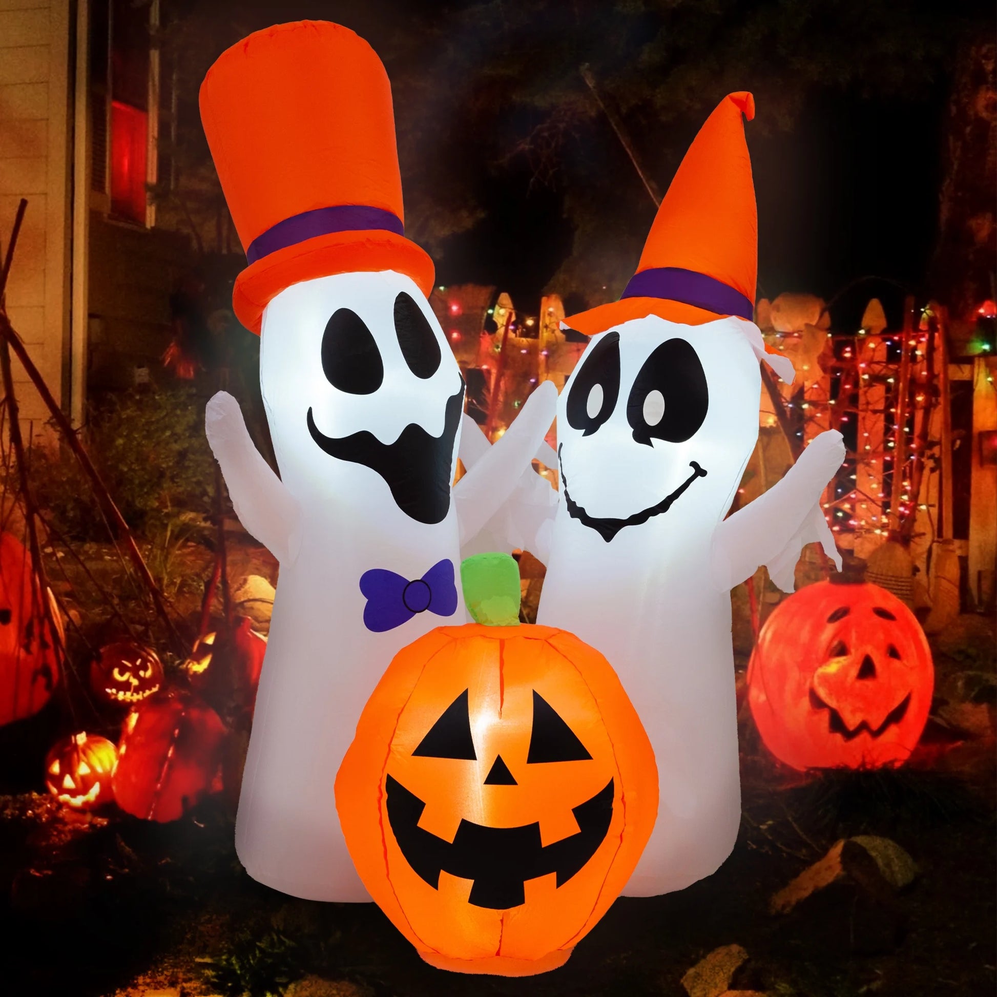- Lighted Design for Halloween Night: Our Halloween inflatable pumpkins and ghost feature internal LED lights that enhance their expressions and create a spooky atmosphere for your Halloween party or trick or treat activities. The ghastly white light adds an eerie touch to the decoration.