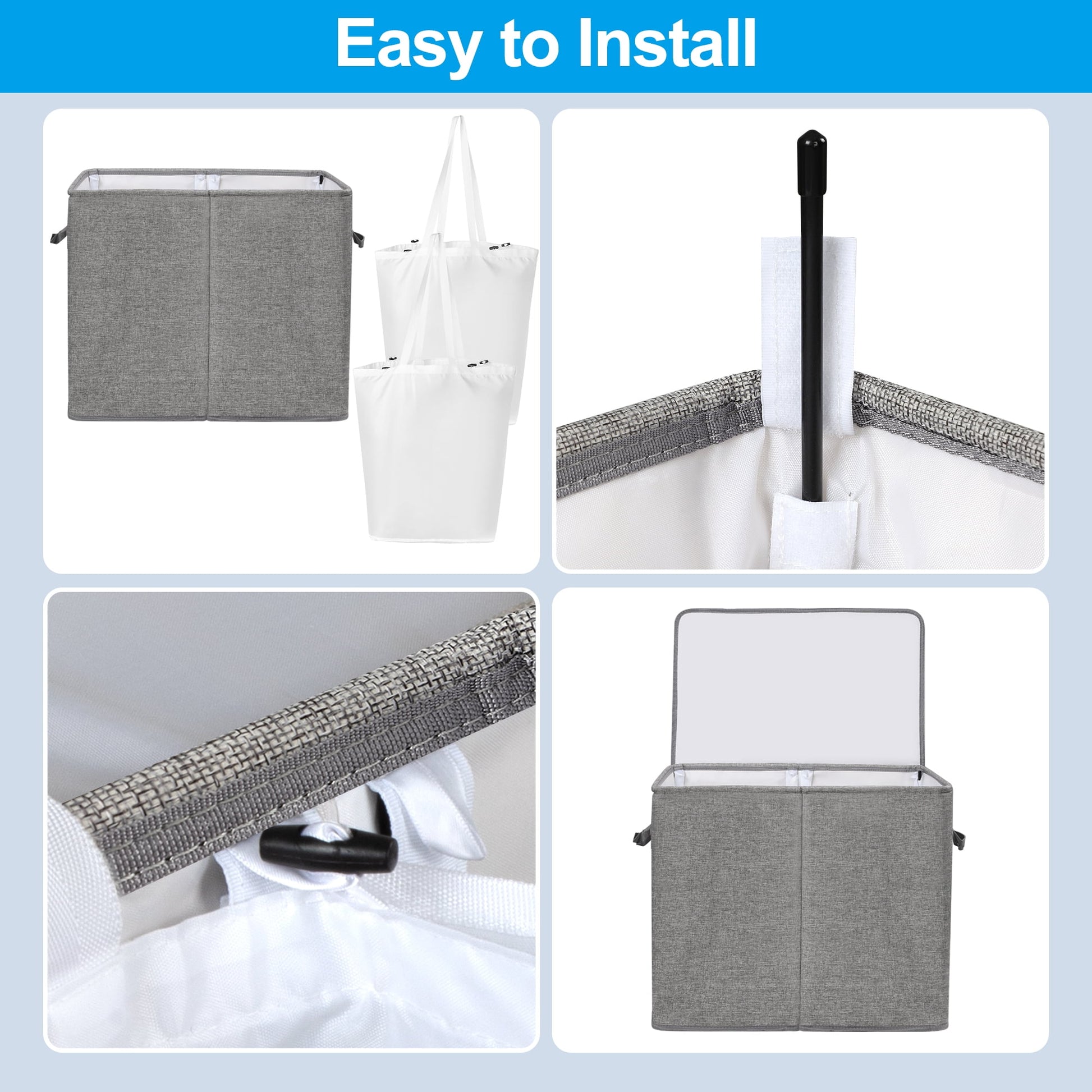 - 【Easy to Install and Foldable】Hampers for bedroom with detailed installation instructions, just insert 8 support rods into the fixed tube, and you can complete the laundry basket installation in 3 minutes, the operation is simple and convenient. In addition, it can be folded up and stored in a cabinet when idle, reducing the space occupation.