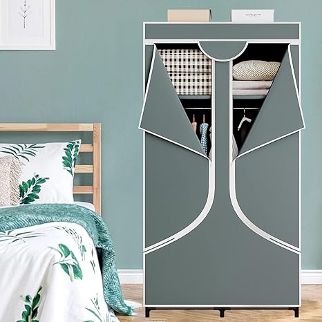 YOUPINS Portable Wardrobe Closet Storage Organizer Metal Hanging Rack Non-Woven Fabric 34 Inch Black-Gray