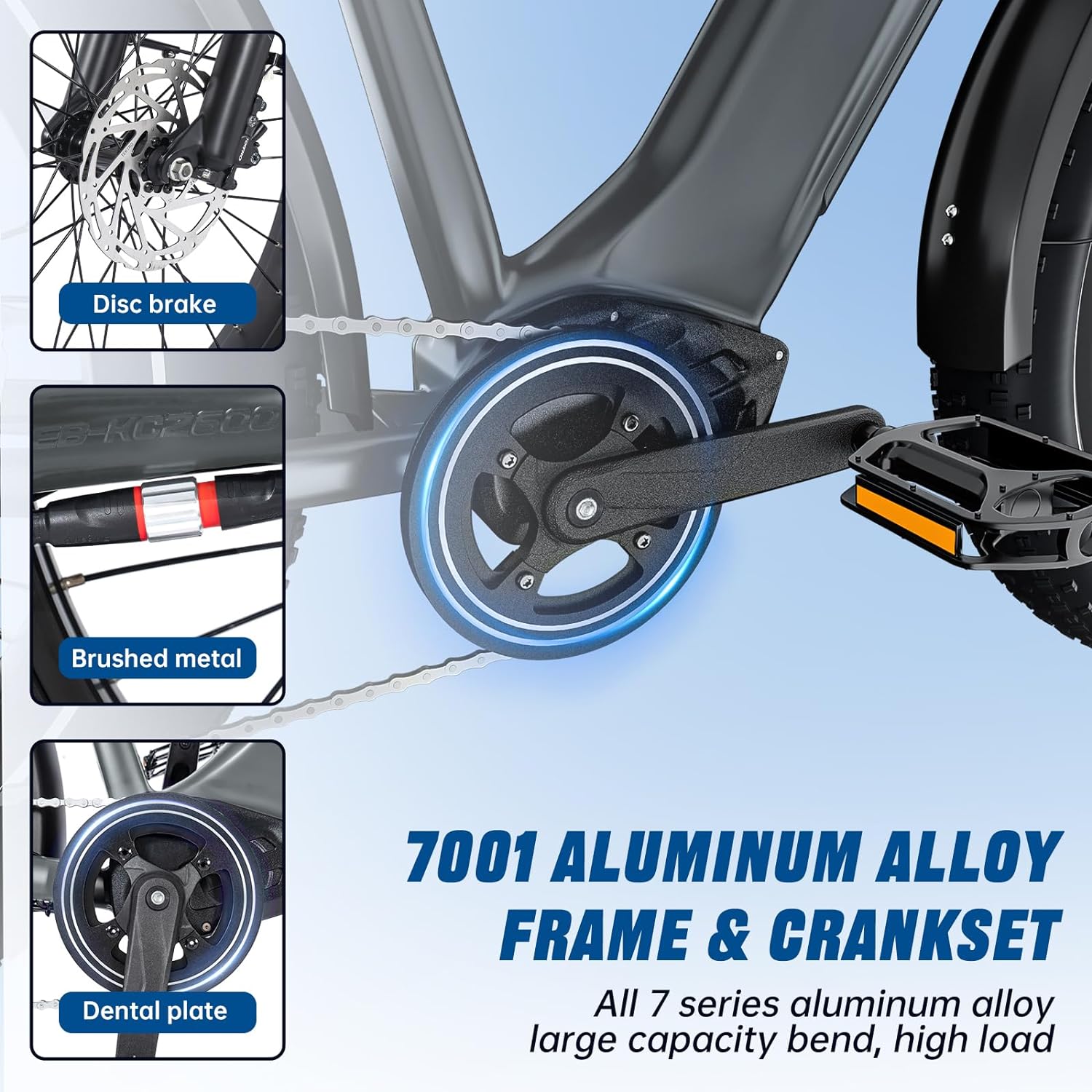 - [VERSATILE RIDING EXPERIENCE WITH 7-SPEED SHIMANO SYSTEM AND 3 RIDING MODES] Enjoy the convenience of a 7-Speed Shimano system, providing smooth and precise gear shifts for various terrains. Combined with 3 riding modes (Pedal-Assist, Electric-only, and Manual), our EBike offers a versatile riding experience, empowering you to effortlessly conquer hills, extend battery life, or enjoy a traditional bike ride as per your preference.